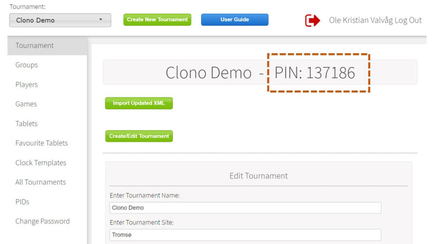 Once you have created a PID and inserted the same PID on all your tablets, you can simply route the tablets to the tournament you want, simply by editing which PIN-code the PID points to.